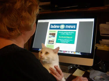 Elise wanted to do something meaningful in Georgie's memory. Having followed the work of Dr. Whittred at the Ladew Cat Sanctuary via its website, she noticed that it did not have a printed newsletter and thought that volunteering her communications services to the shelter would be a fitting tribute to Georgie. So, she made Dr. Whittred an offer she couldn't refuse. The shelter's newsletter, The Ladew Mews, began in April 2011. Elise was not only responsible for the creative design of the newsletter, she also helped with advertising, posters, brochures and cards. All in the memory of a sweet cat named Georgie. I'm sure Georgie is purring somewhere knowing that he continues to make a difference.